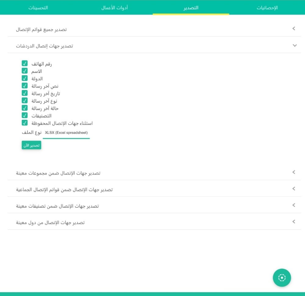 التصدير حسب مزامنة الرقم مع الواتساب ويب وقد لا تظهر جميع الأرقام