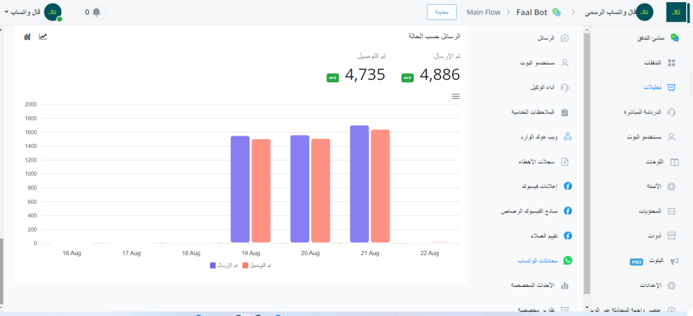 - 5 مستخدمين لإدارة رقم واتساب قابلة للزيادة.