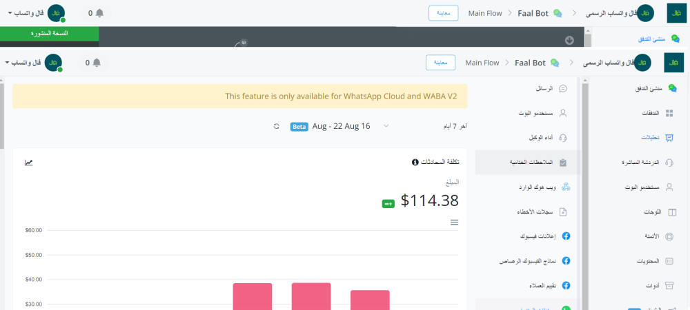 - كل رسالة واتساب تُرسل للعميل لها تكلفة مالية.