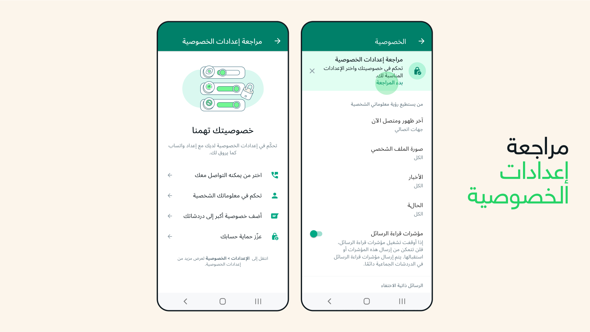 This feature provides step-by-step guidance through important privacy settings to help you choose the level of protection that's right for you, all in one place. Selecting "Start Review" in your privacy settings will take you through multiple layers of privacy that enhance the security of your messages, calls, and personal information.